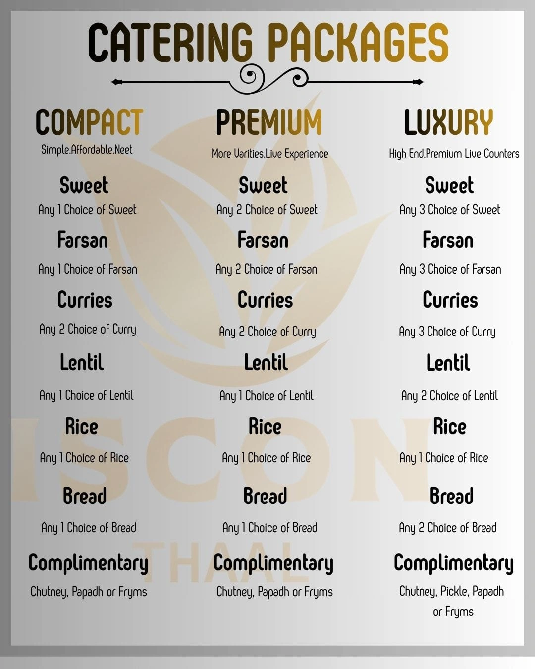 Choose between full-service outdoor catering or ready-to-serve packaged catering based on your needs and budget.